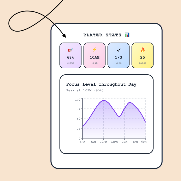 See when your focus naturally peaks - morning, afternoon, or night. Our analytics help you notice patterns and create realistic goals. No pressure, just data that helps you understand your brain better.